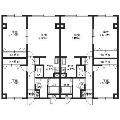 2LDK(58.5m²)└ LDK12.5帖 洋室6.3帖 洋室5.8帖