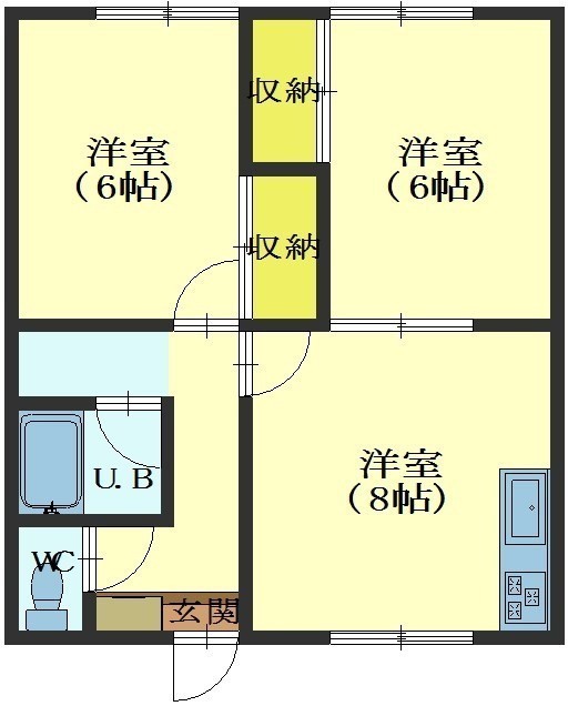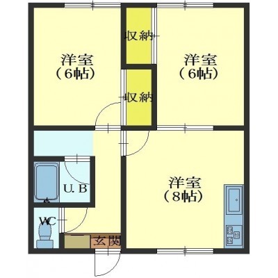 2DK(46.37m²)└ DK8帖 洋室6帖 洋室6帖
