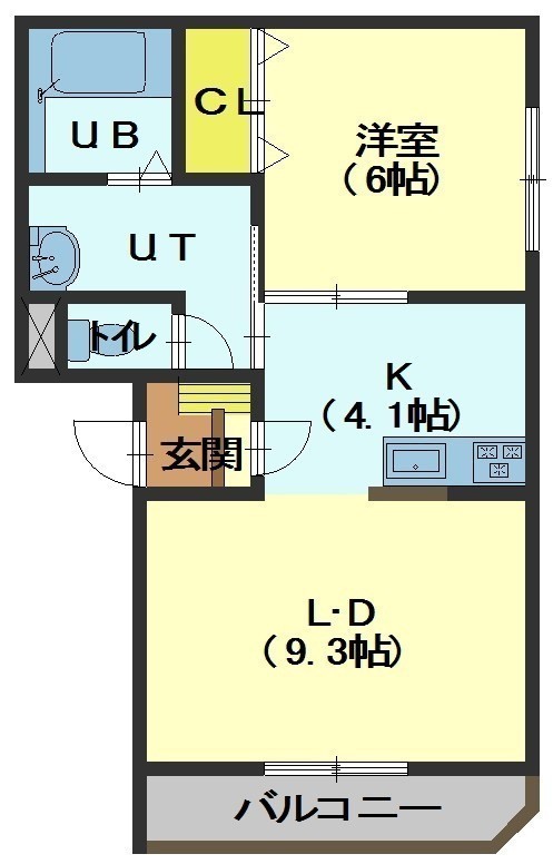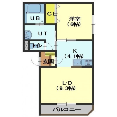 1LDK└ LD9.3帖 洋室6帖 K4.1帖