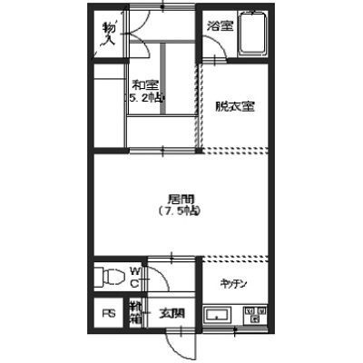 1LDK└ LDK7.5帖 和室5.2帖