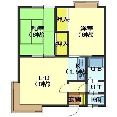 2DK└ DK8帖 K 和室6帖 洋室6帖