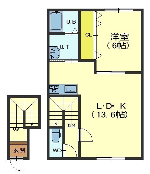 1LDK(49.27m²)└ LDK13.6帖 洋室6帖