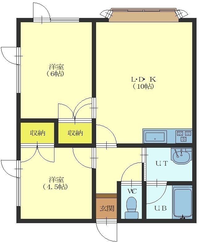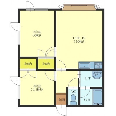 2LDK(46.28m²)└ LDK10帖 洋室6帖 洋室4.5帖