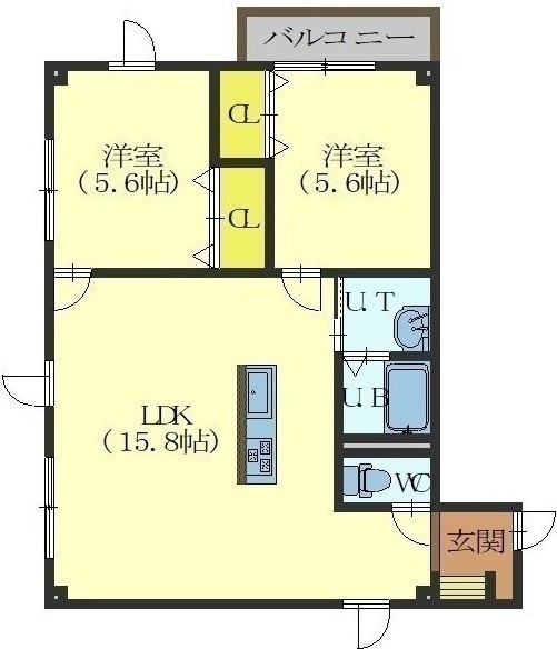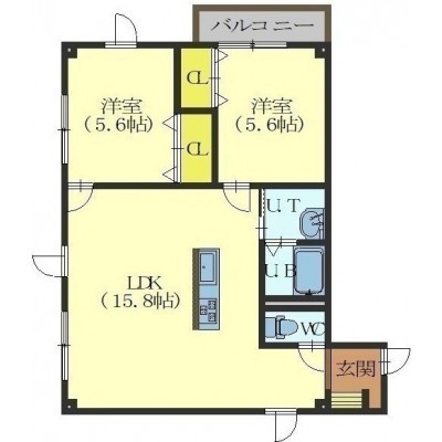 2LDK(59.45m²)└ LDK15.8帖 洋室5.6帖 洋室5.6帖