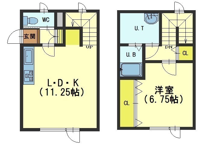 1LDK(41.3m²)└ 1階:LDK11.25帖 / 2階:洋室6.75帖