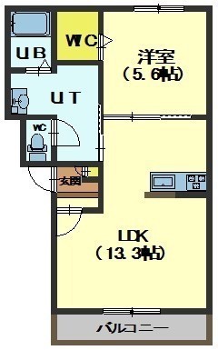 1LDK(44.2m²)└ LDK13.3帖 洋室5.6帖