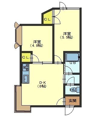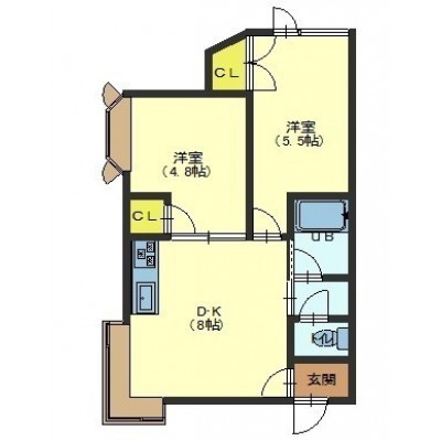 2LDK(39.76m²)└ DK8帖 洋室6帖 洋室4.5帖