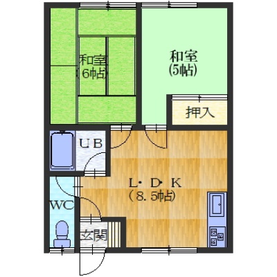 2DK(39.66m²)└ DK8.5帖 和室6帖 和室4.5帖