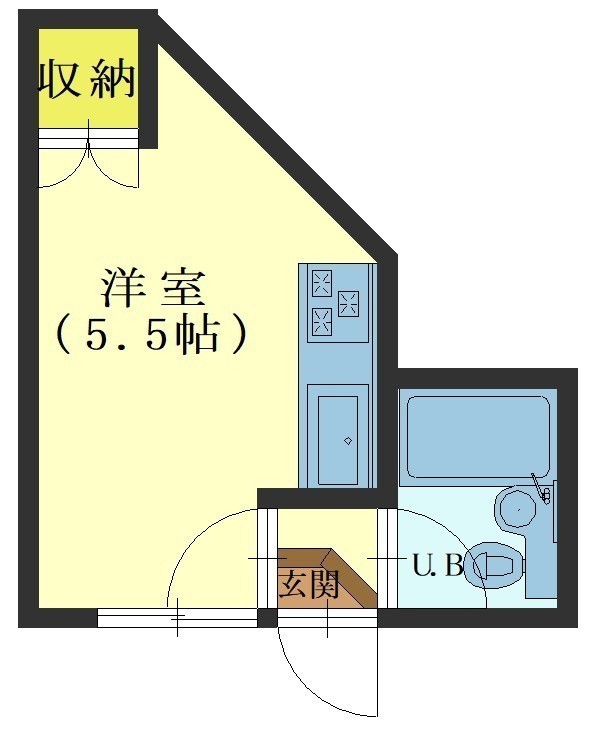 ワンルーム(14.3m²)└ 洋室5.5帖