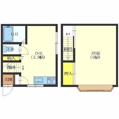1DK(37.26m²)└ 1階:DK7.25帖 / 2階:洋室8.75帖