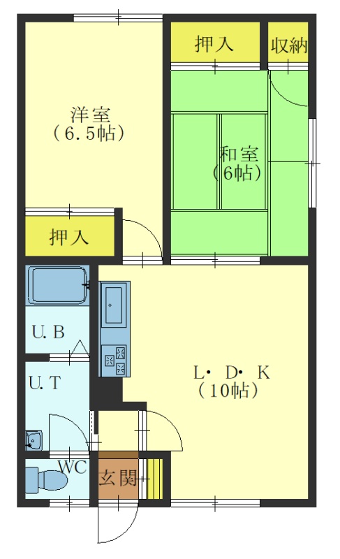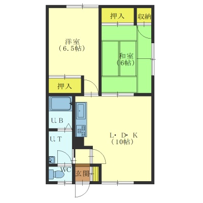 2LDK(49.6m²)└ LDK10帖 洋室6.5帖 和室6帖