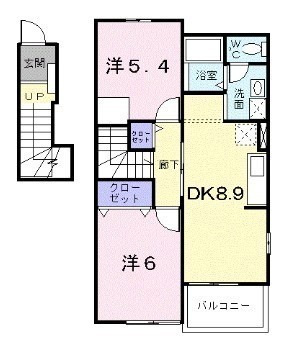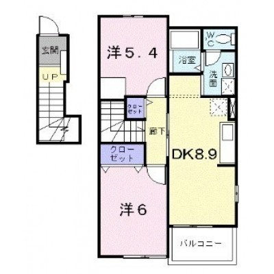 2DK(51.67m²)└ DK8.9帖 洋室6帖 洋室5.4帖