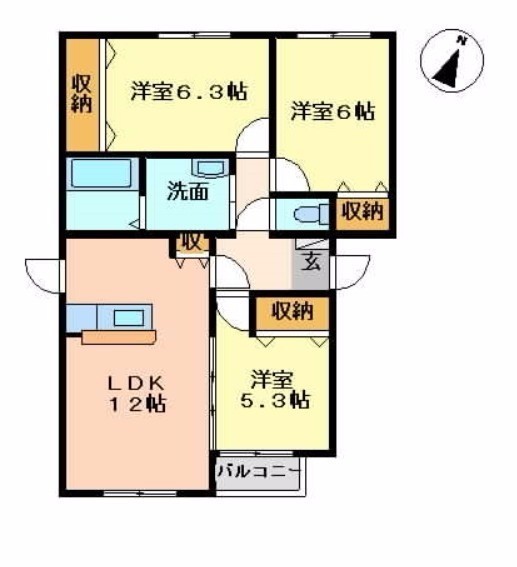 3LDK(68.1m²)└ LDK12帖 洋室6.3帖 洋室6帖 洋室5.3帖