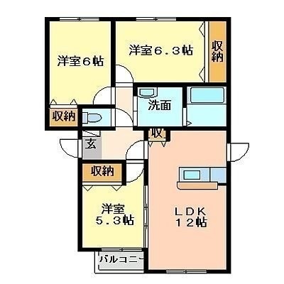 3LDK(68.1m²)└ LDK12帖 洋室6帖 洋室5.3帖 洋室6.3帖