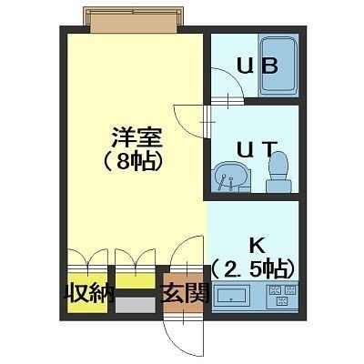 1K(25m²)└ 洋室8帖 K2.5帖