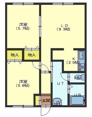 2LDK(52m²)└ LD9.3帖 K2.5帖 洋室5.6帖 洋室5.7帖