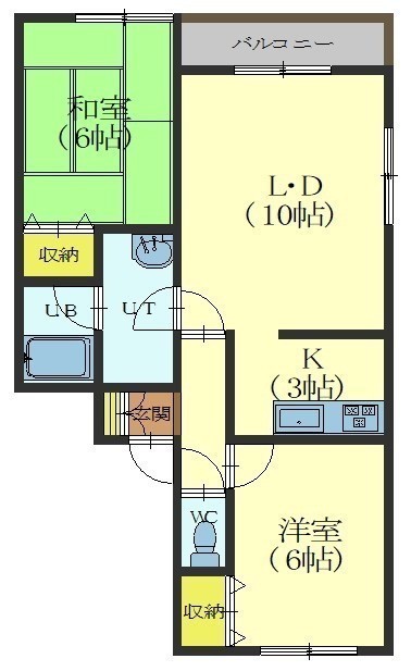 2LDK(52.89m²)└ LD10帖 K3帖 和室6帖 洋室6帖