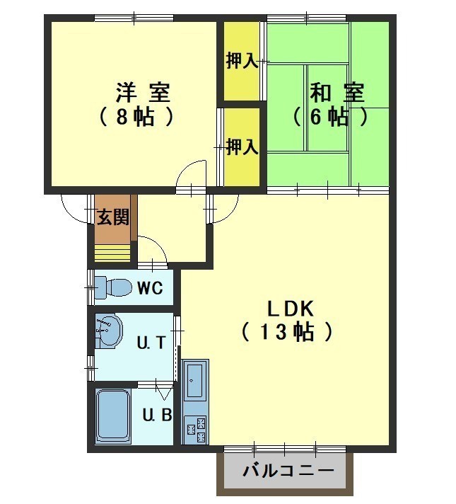 2LDK(58m²)└ LDK13帖 洋室8帖 和室6帖