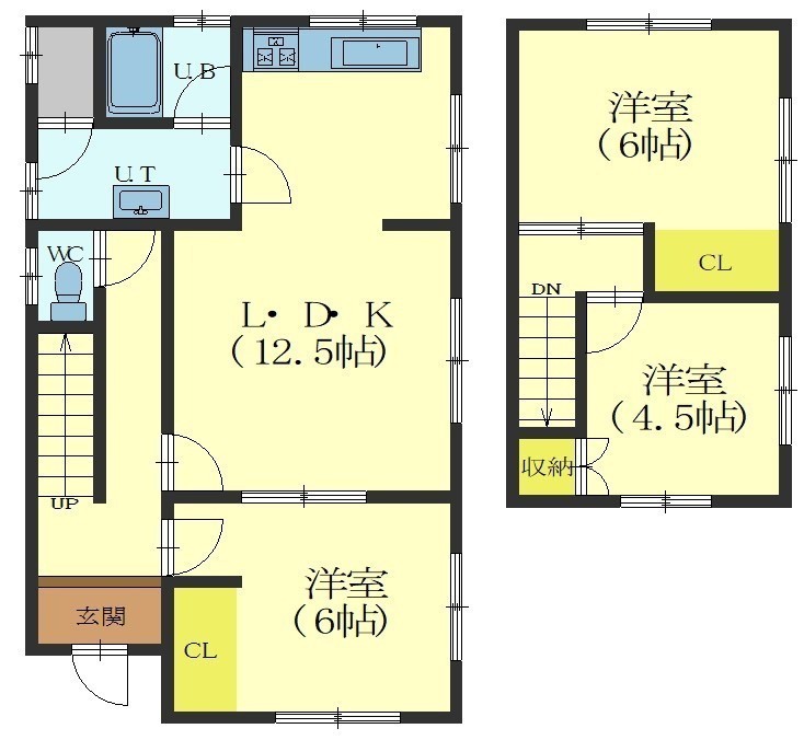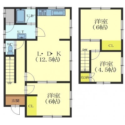 3LDK(80.9m²)└ 1階:LDK12.5帖 洋室6帖 / 2階:洋室6帖 洋室4.5帖