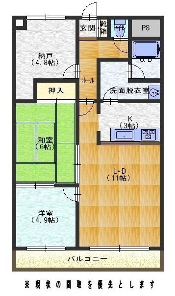 3LDK(71.4m²)└ LD11帖 K3帖 洋室4.9帖 洋室4.8帖 和室6帖