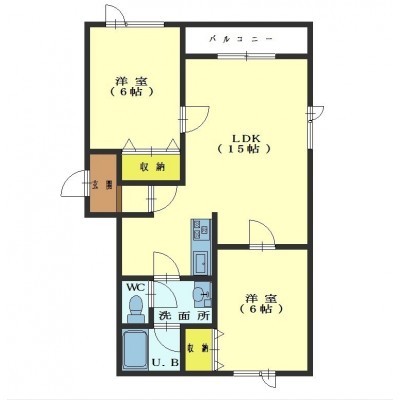 2LDK└ LDK15帖 洋室6帖 洋室6帖