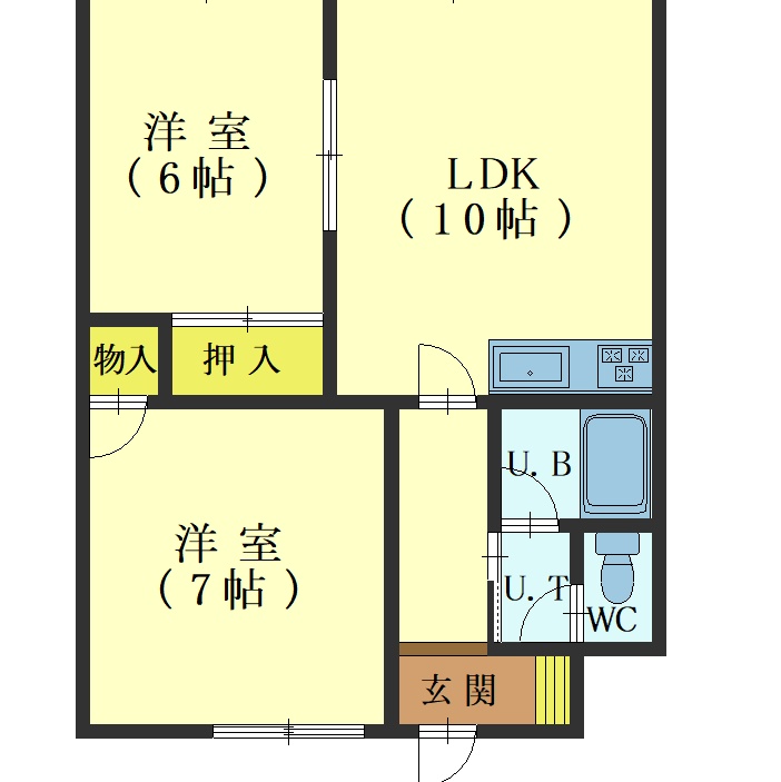 2LDK(45.45m²)└ LDK10帖 洋室6帖 洋室6帖