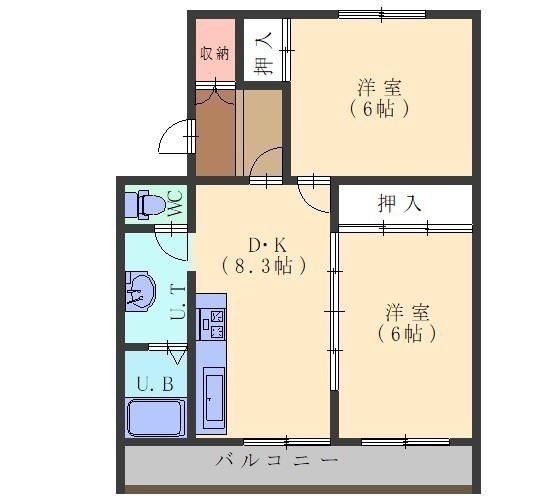 2DK(50.69m²)└ DK8.3帖 洋室6帖 洋室6帖