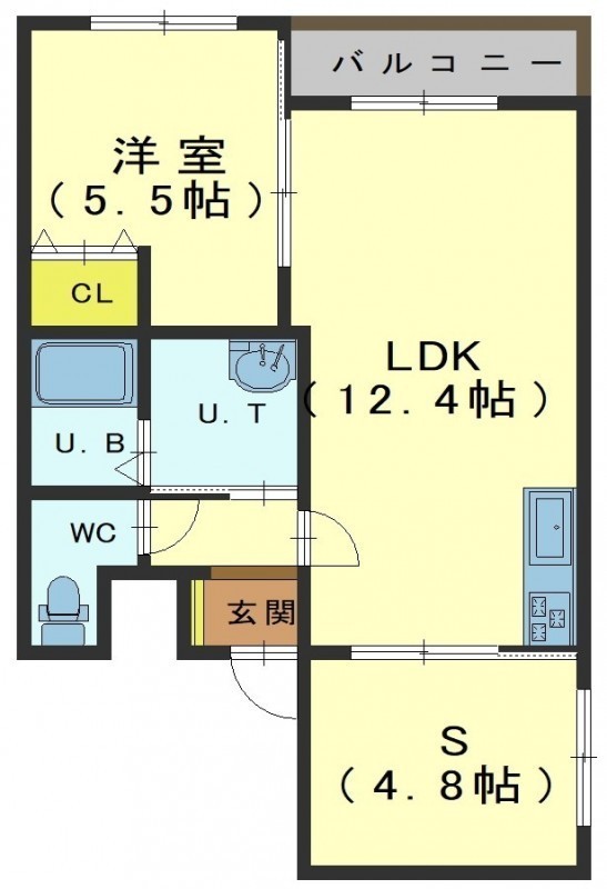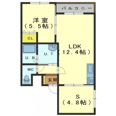 1SLDK(50.45m²)└ LDK12.4帖 S4.8帖 洋室5.5帖
