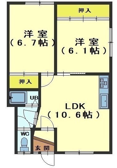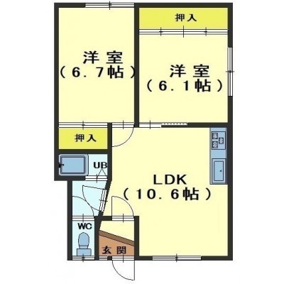 2LDK(49.59m²)└ LDK11帖 洋室5.2帖 和室6.7帖