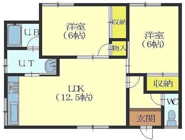 2LDK(56.31m²)└ LDK12.5帖 洋室6帖 洋室6帖