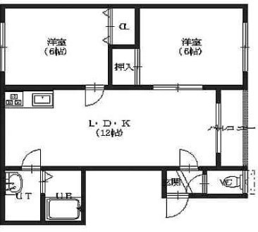 2LDK(49.58m²)└ LDK12帖 洋室6帖 洋室6帖 / 12/6/6