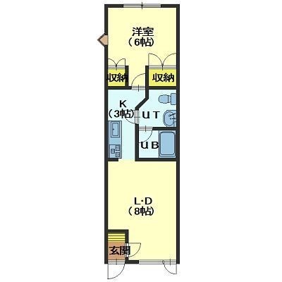 1DK(39.2m²)└ D8帖 K2帖 洋室6帖