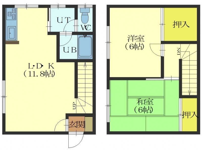 2LDK(56.7m²)└ 1階:LDK11.9帖 / 2階:洋室6帖 和室6帖