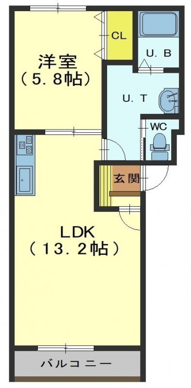 1LDK(43.13m²)└ LDK13.2帖 洋室5.8帖
