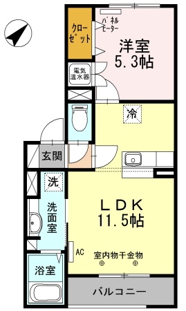 1LDK(40.59m²)└ LDK11.5帖 洋室5.3帖