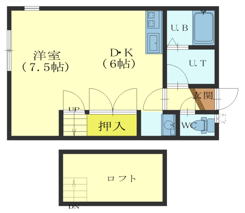 1DK(29.44m²)└ DK6帖 洋室7.5帖
