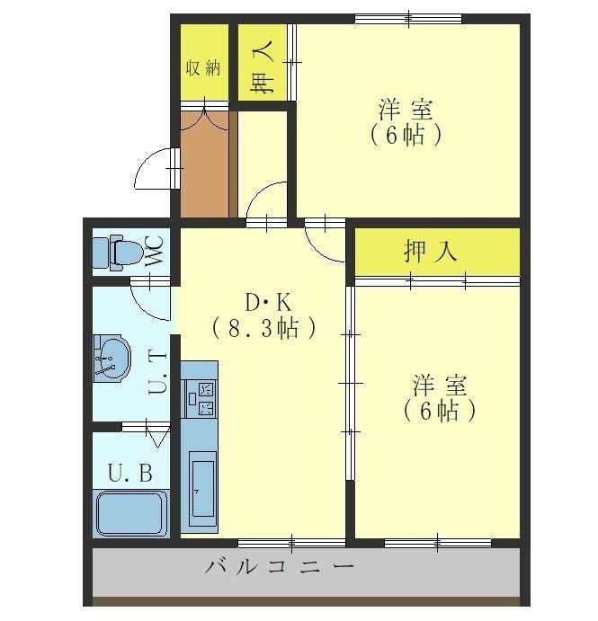 2DK(50.69m²)└ DK8.3帖 洋室6帖 洋室6帖