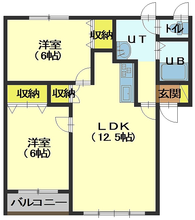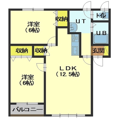 2LDK(54.69m²)└ LDK12.5帖 洋室6帖 洋室6帖