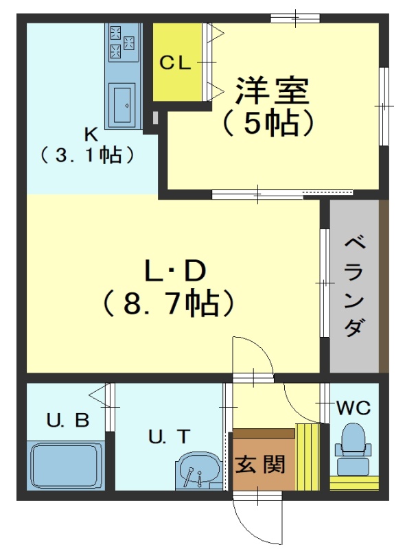 1LDK└ LD8.7帖 K3.1帖 洋室5帖
