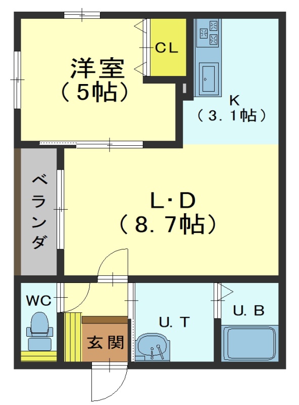 1LDK└ LD8.7帖 K3.1帖 洋室5帖