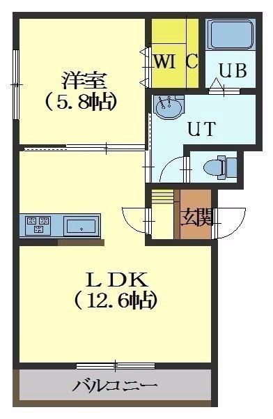 1LDK(43.44m²)└ LDK12.6帖 洋室5.8帖