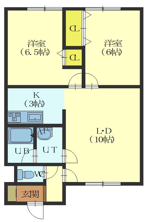 2LDK(54.45m²)└ LDK13帖 洋室6.5帖 洋室6帖