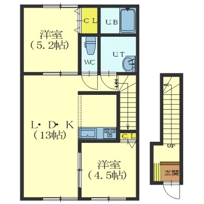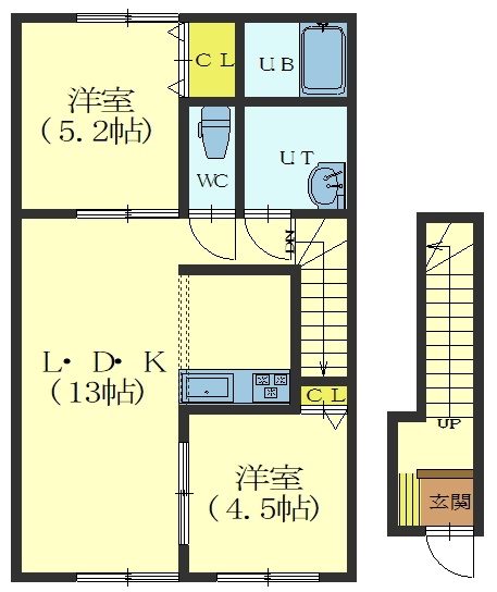 2LDK(52.17m²)└ LDK13帖 洋室5.2帖 洋室4.5帖