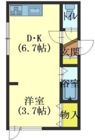 1DK(23.14m²)└ DK6.7帖 洋室3.7帖