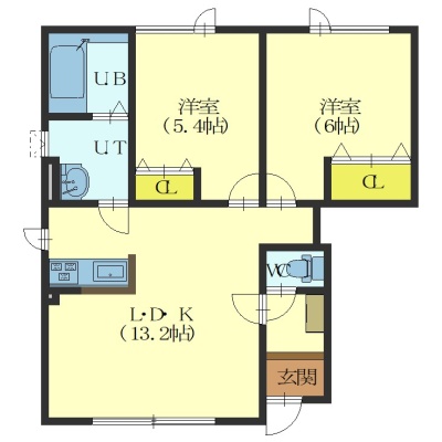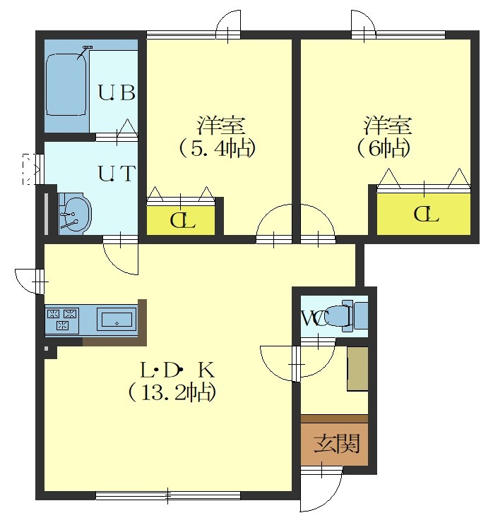 2LDK(54.36m²)└ LDK13.2帖 洋室6帖 洋室5.4帖