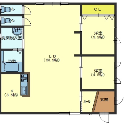 2LDK(81.67m²)└ 1階:LD23.2帖 K3.5帖 洋室5.2帖 洋室4.5帖