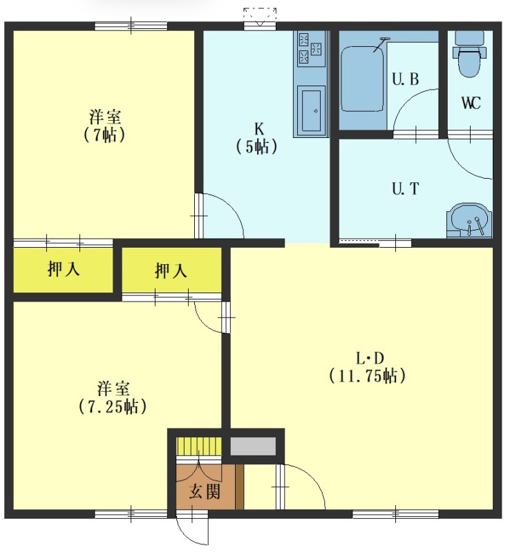 2LDK(65.52m²)└ LD11.7帖 K5帖 洋室7.2帖 洋室7帖