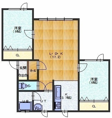 2LDK(48.18m²)└ LDK17帖 洋室6帖 洋室6帖