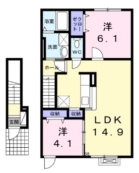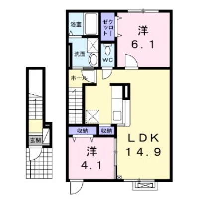 2LDK(58.87m²)└ LDK14.9帖 洋室6.1帖 洋室4.1帖