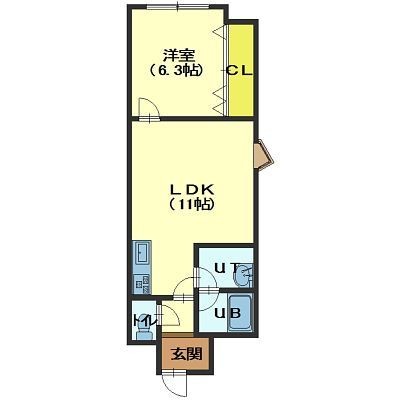1LDK(42.04m²)└ LDK11帖 洋室6.3帖
